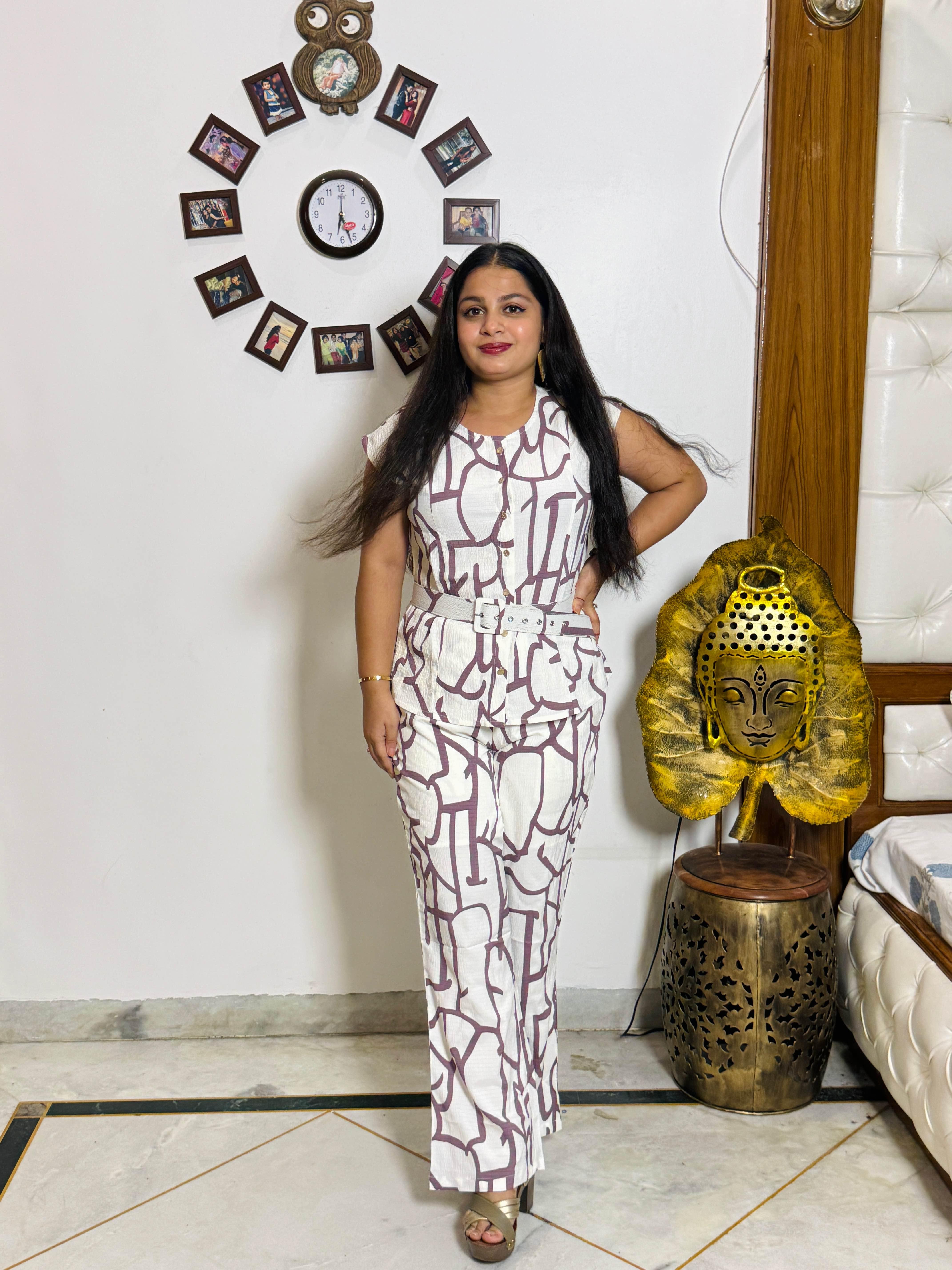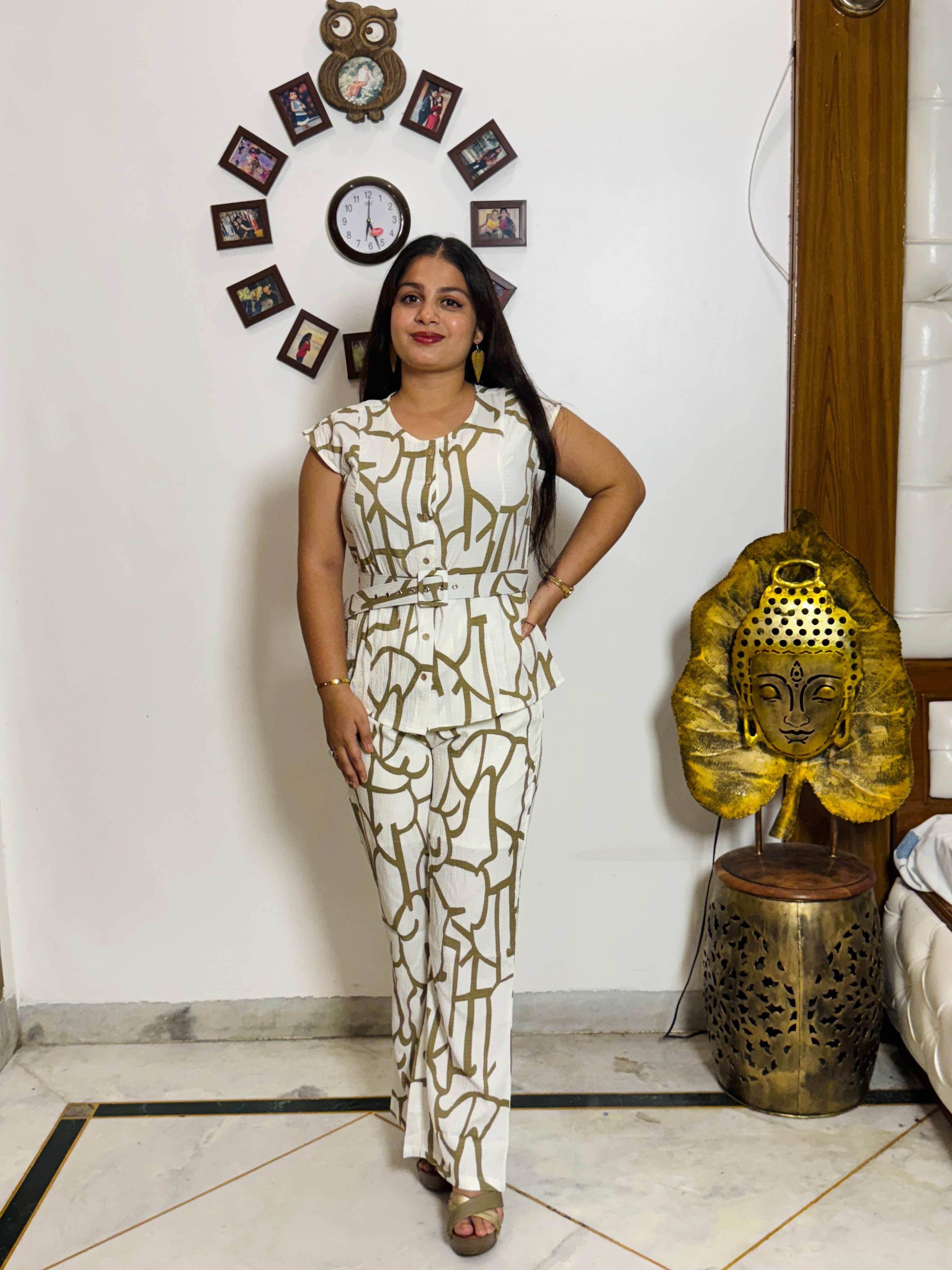 Work : All over abstract print in a modern brushstroke pattern with neutral tones