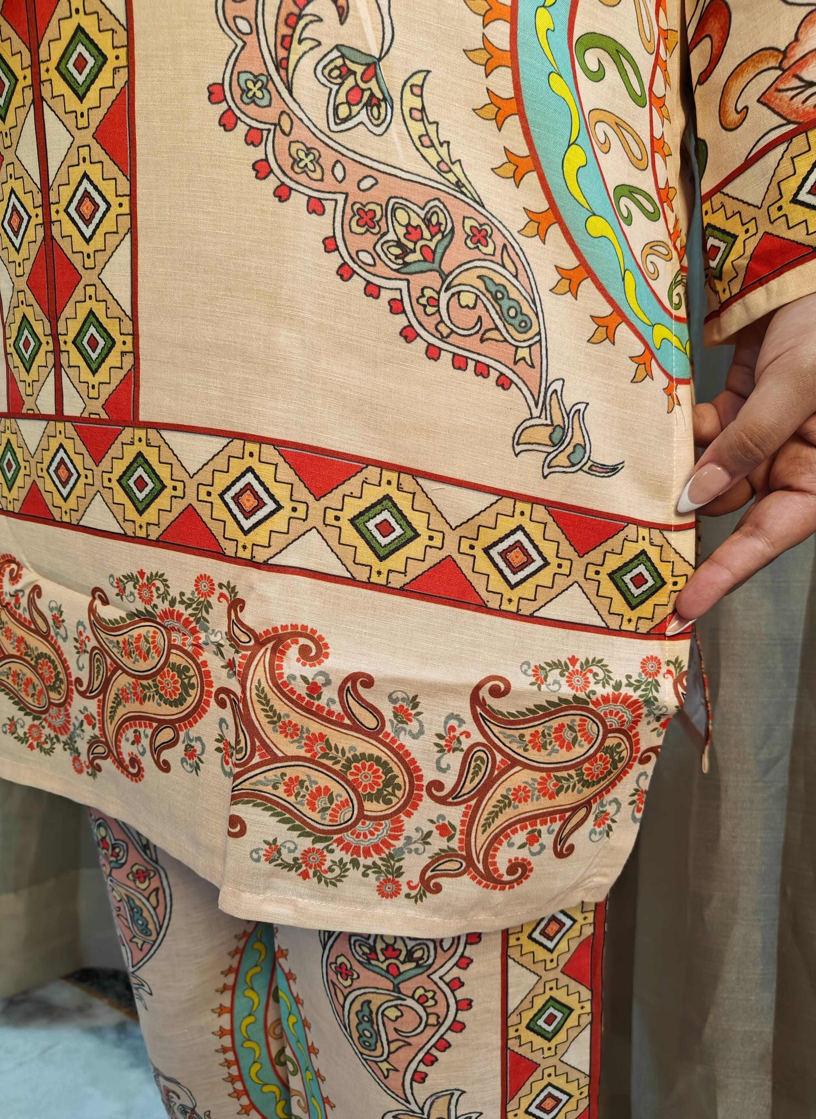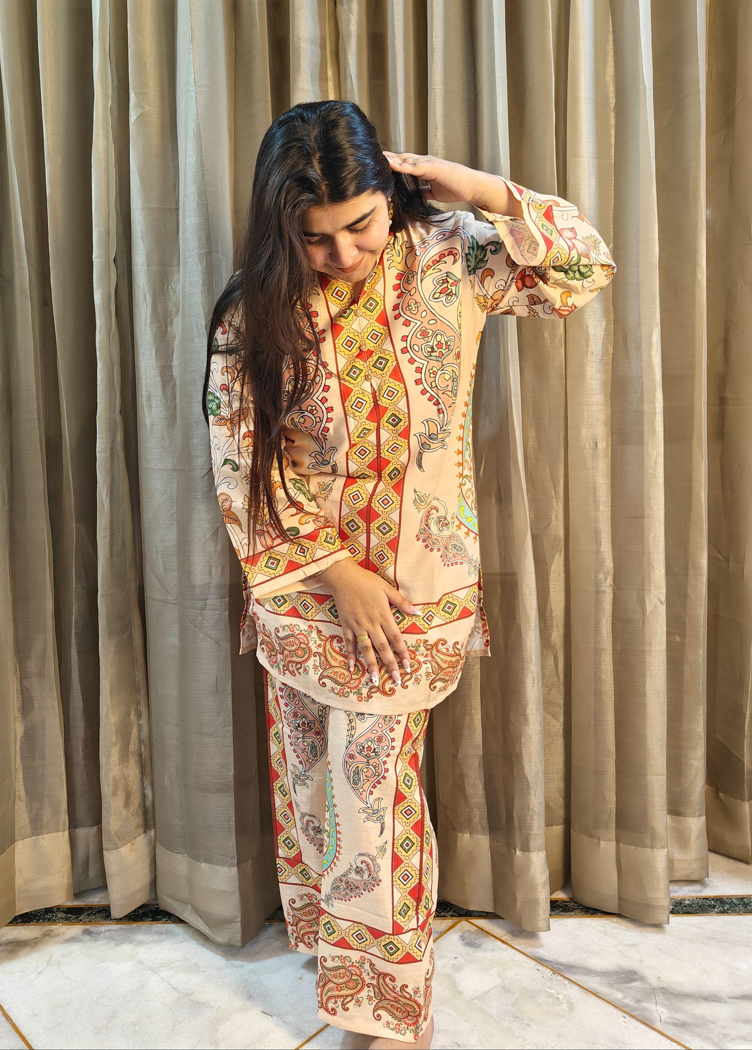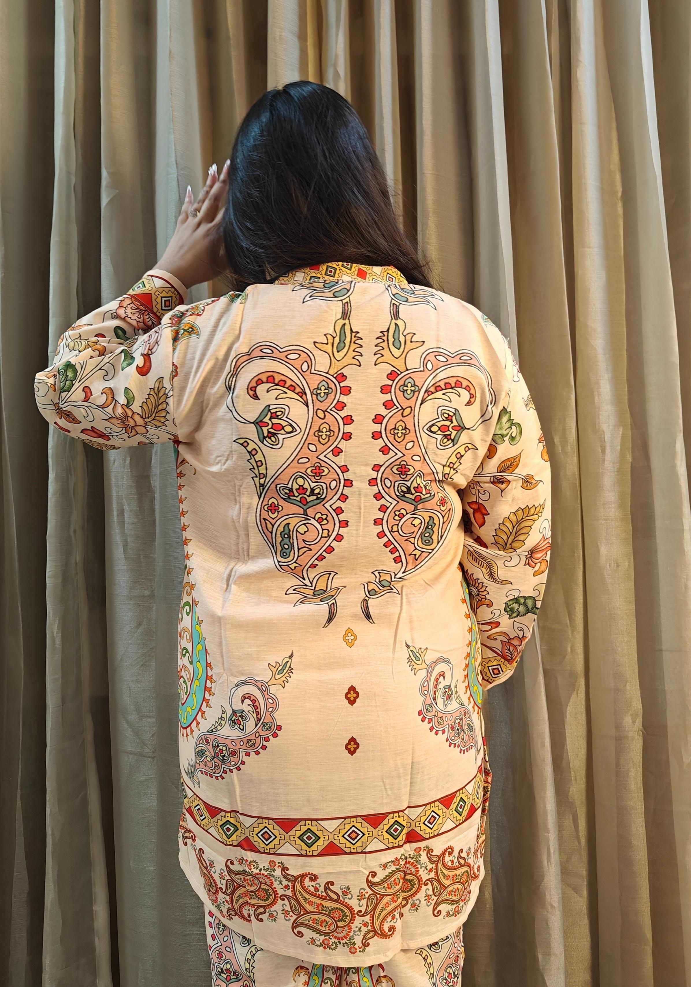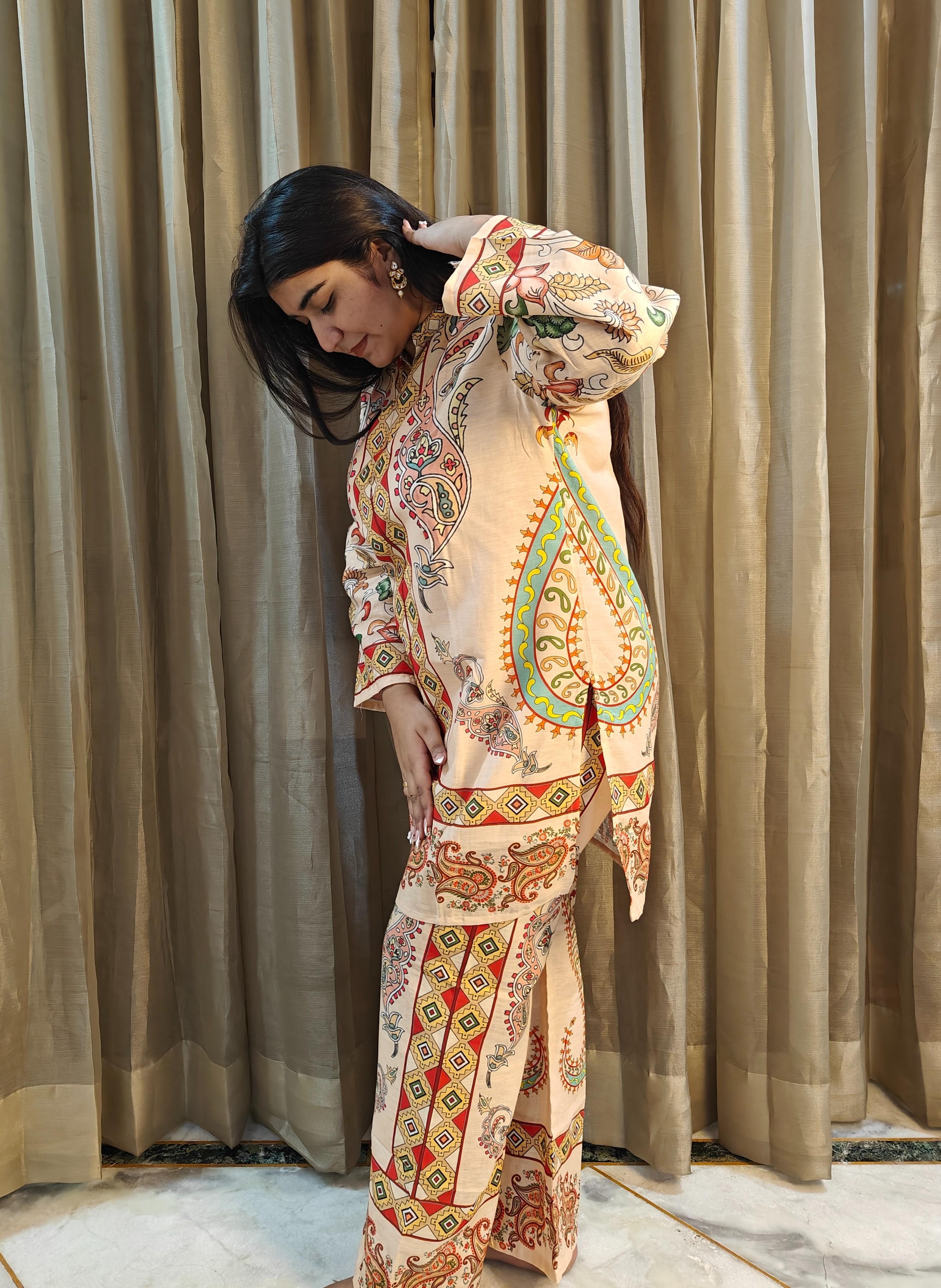Size and Fit: Loose straight fit Kurti with Wide leg pants