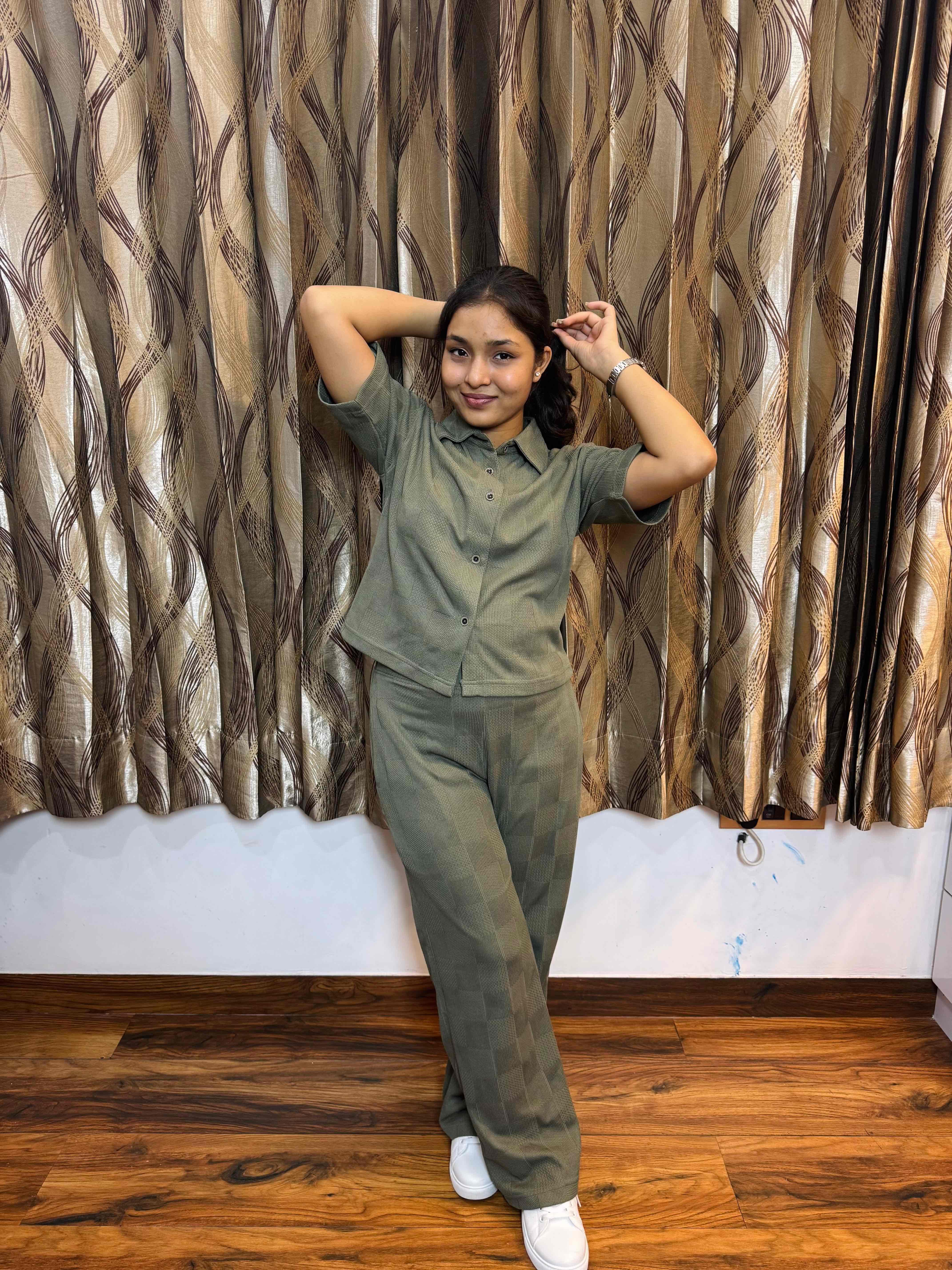 Work: MInimalist Knit block stitching for casual look. button down work for ease.