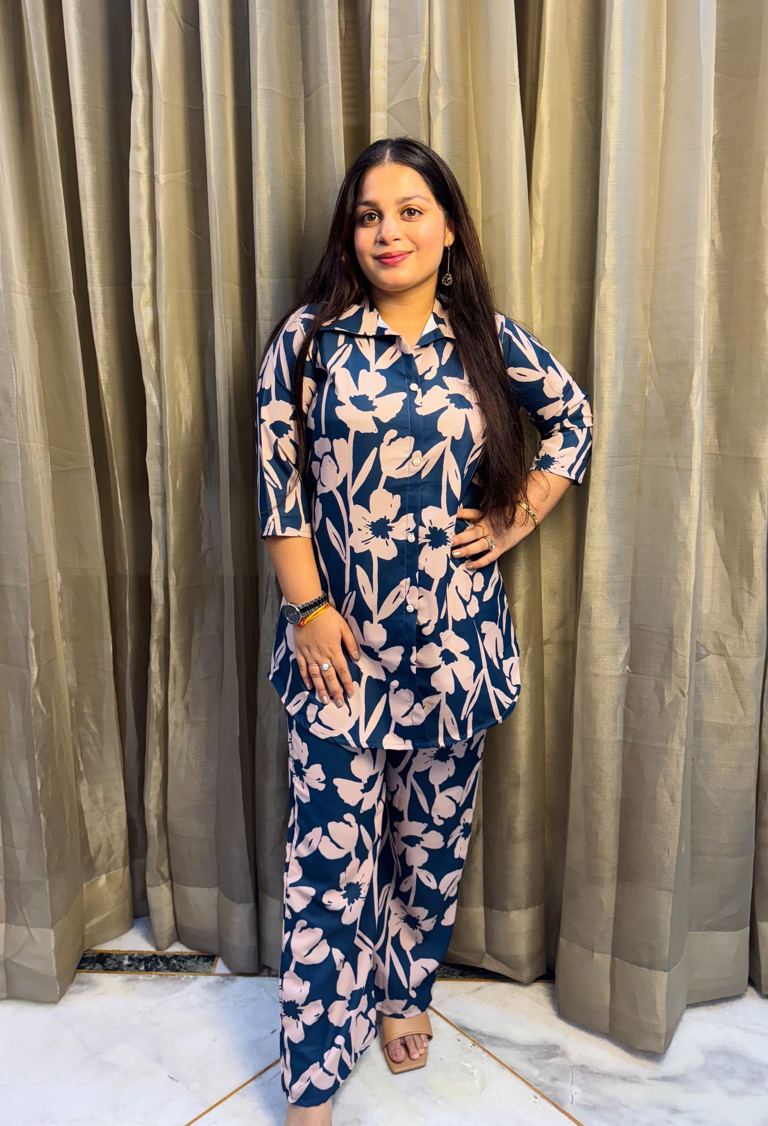 Floral Printed long shirt with matching pants