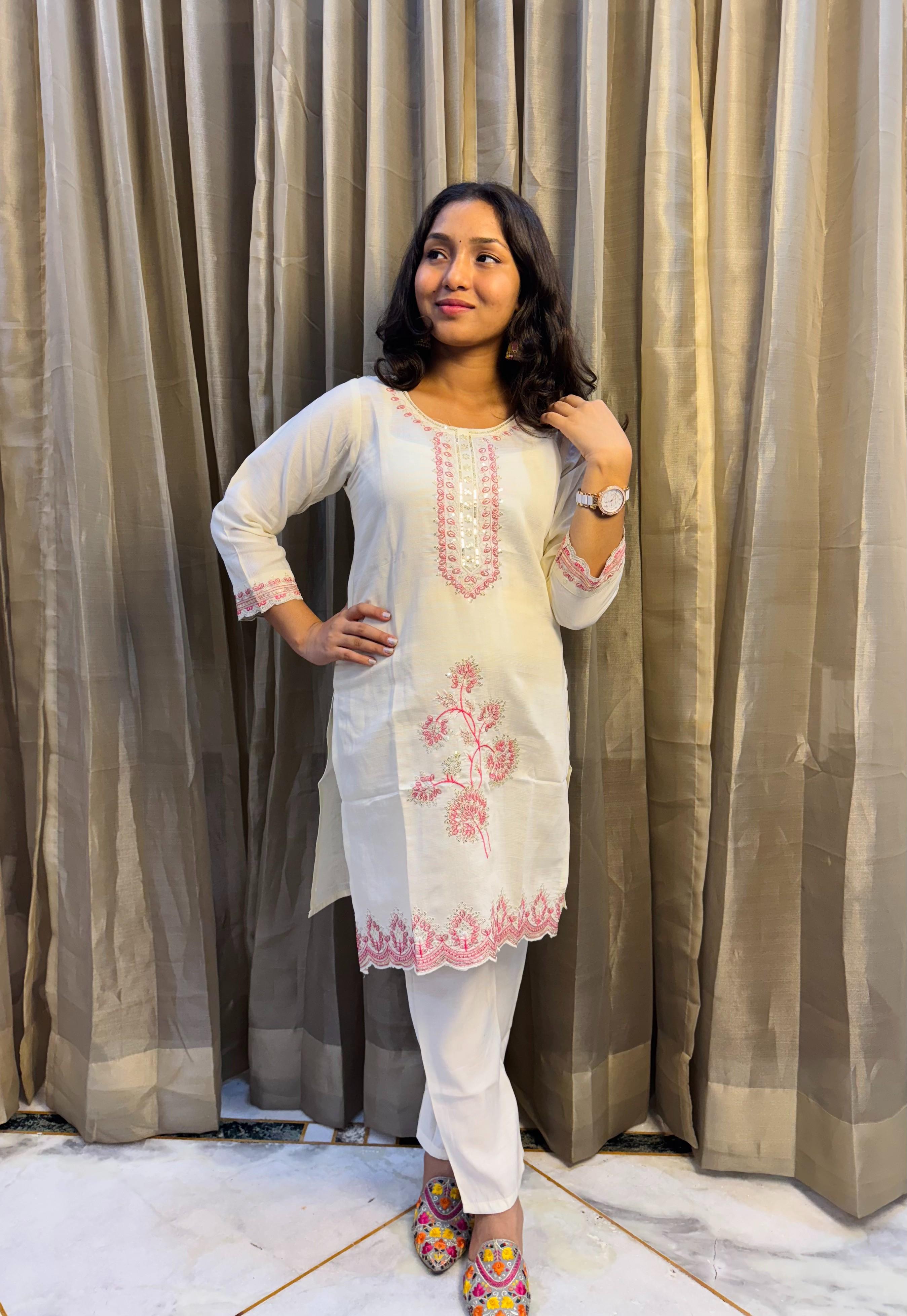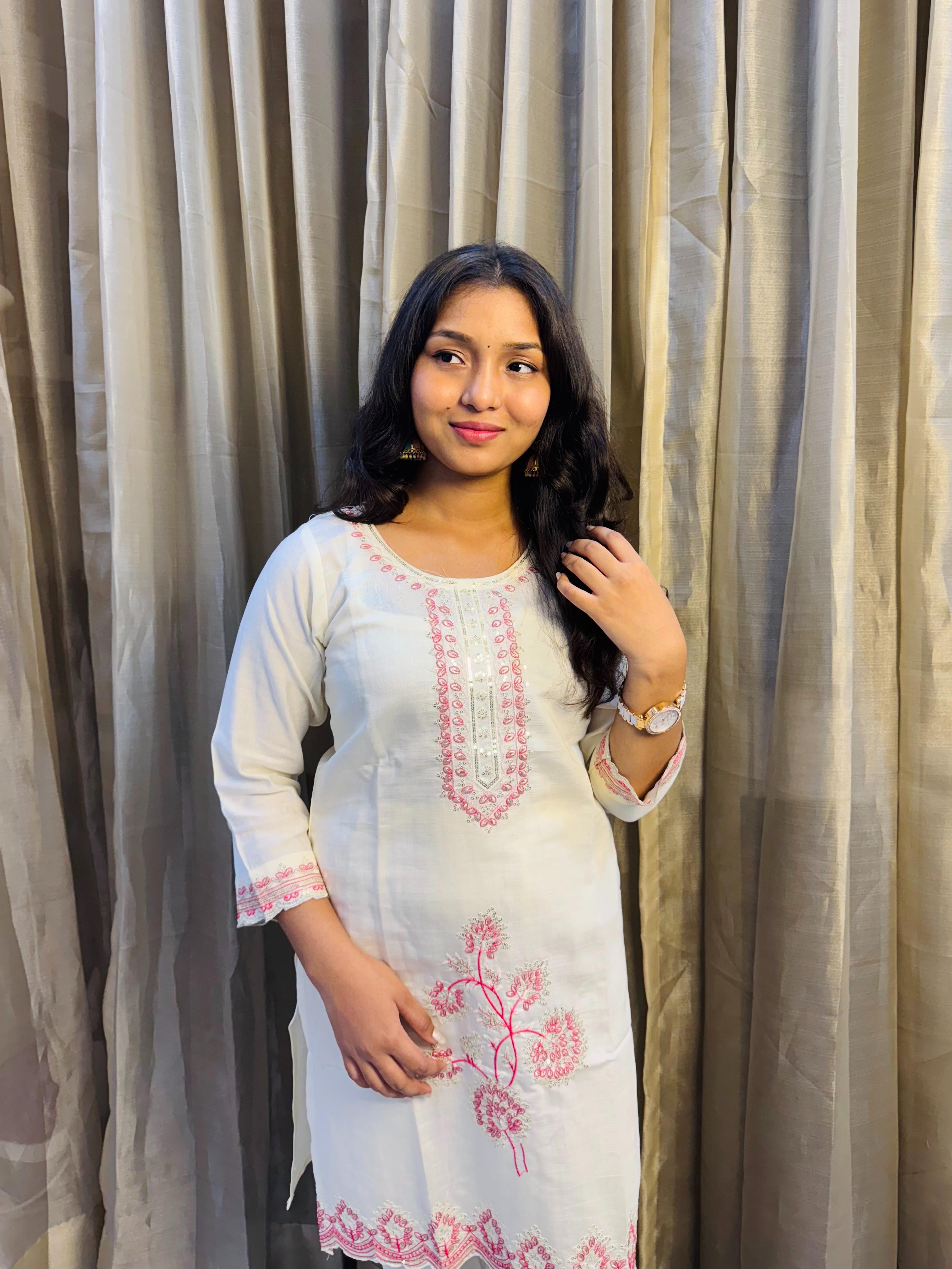 Work: Pink embroidery on the kurti