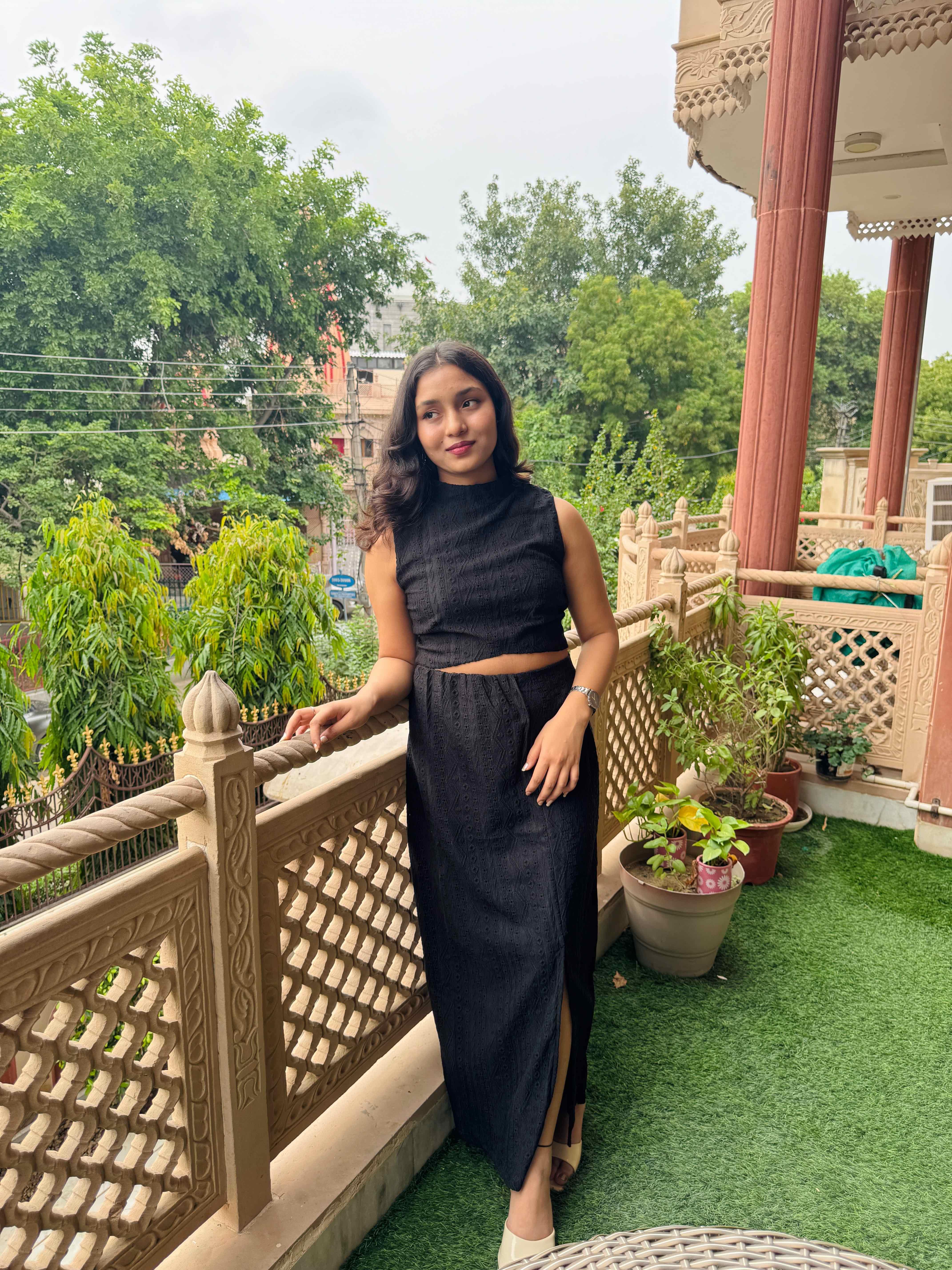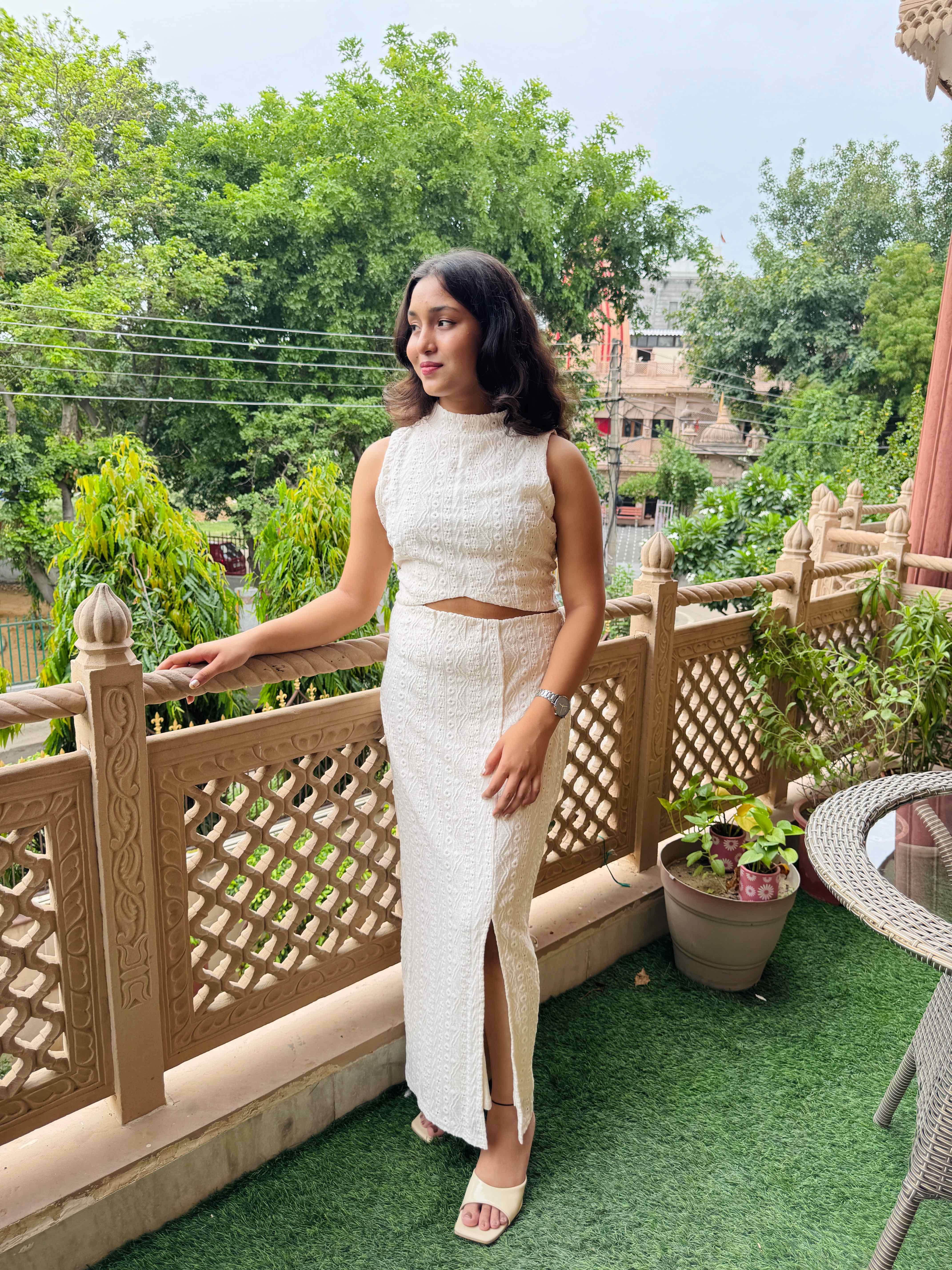 Crochet detailing skirtwith slit with halter neck top