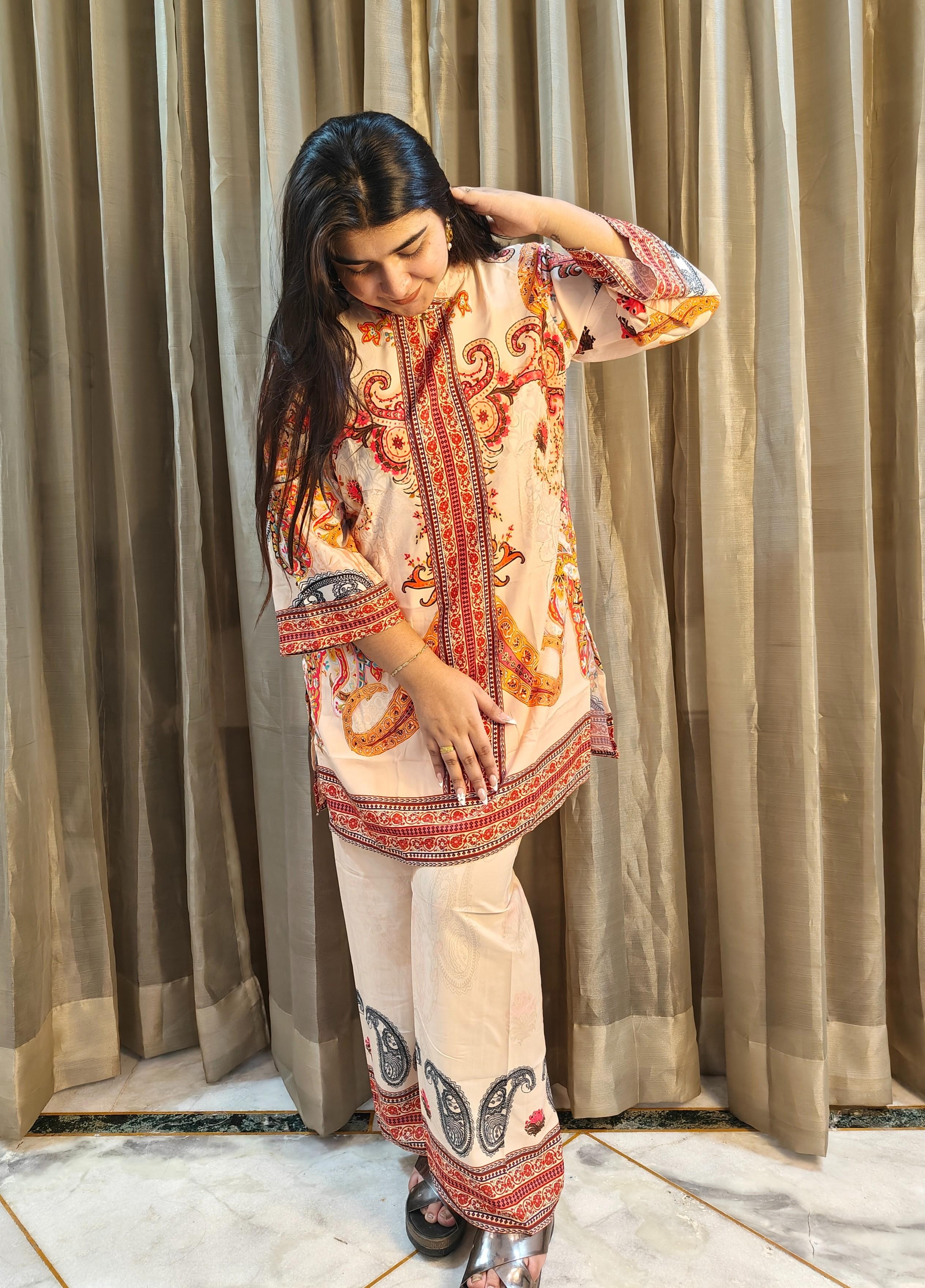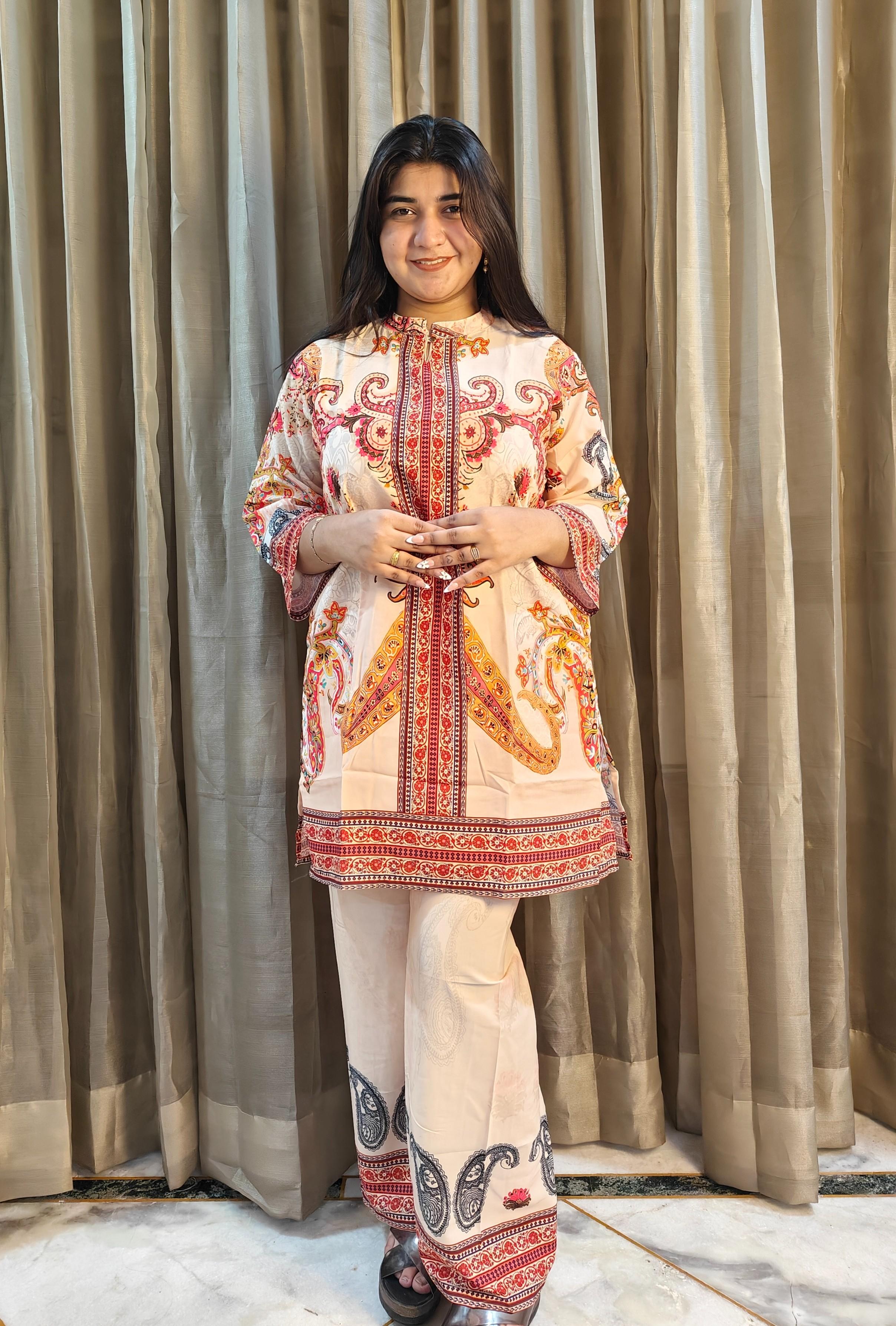 Size and Fit: Loose straight fit Kurti with Wide leg pants
