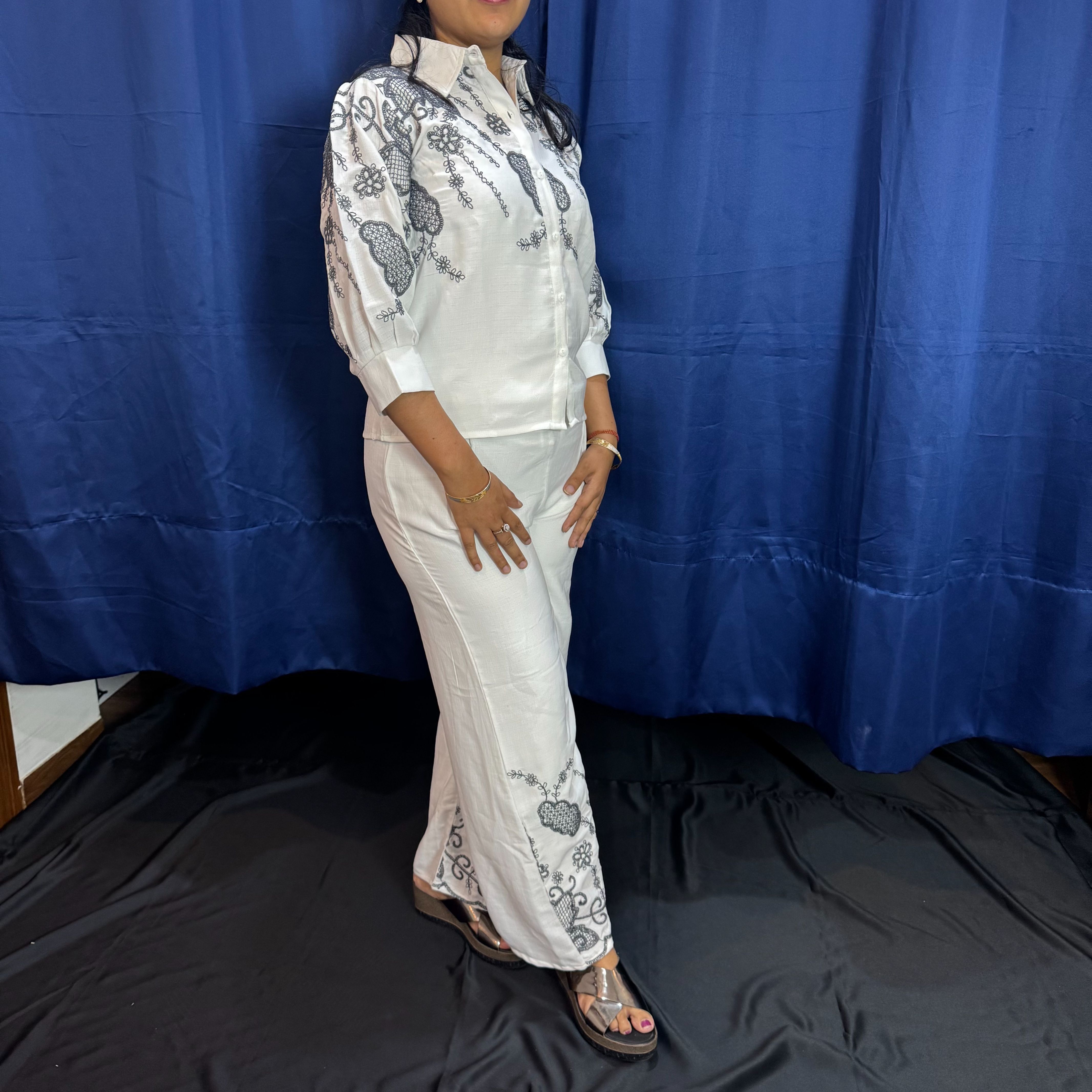 Embroided Cropped shirt with embroided pants