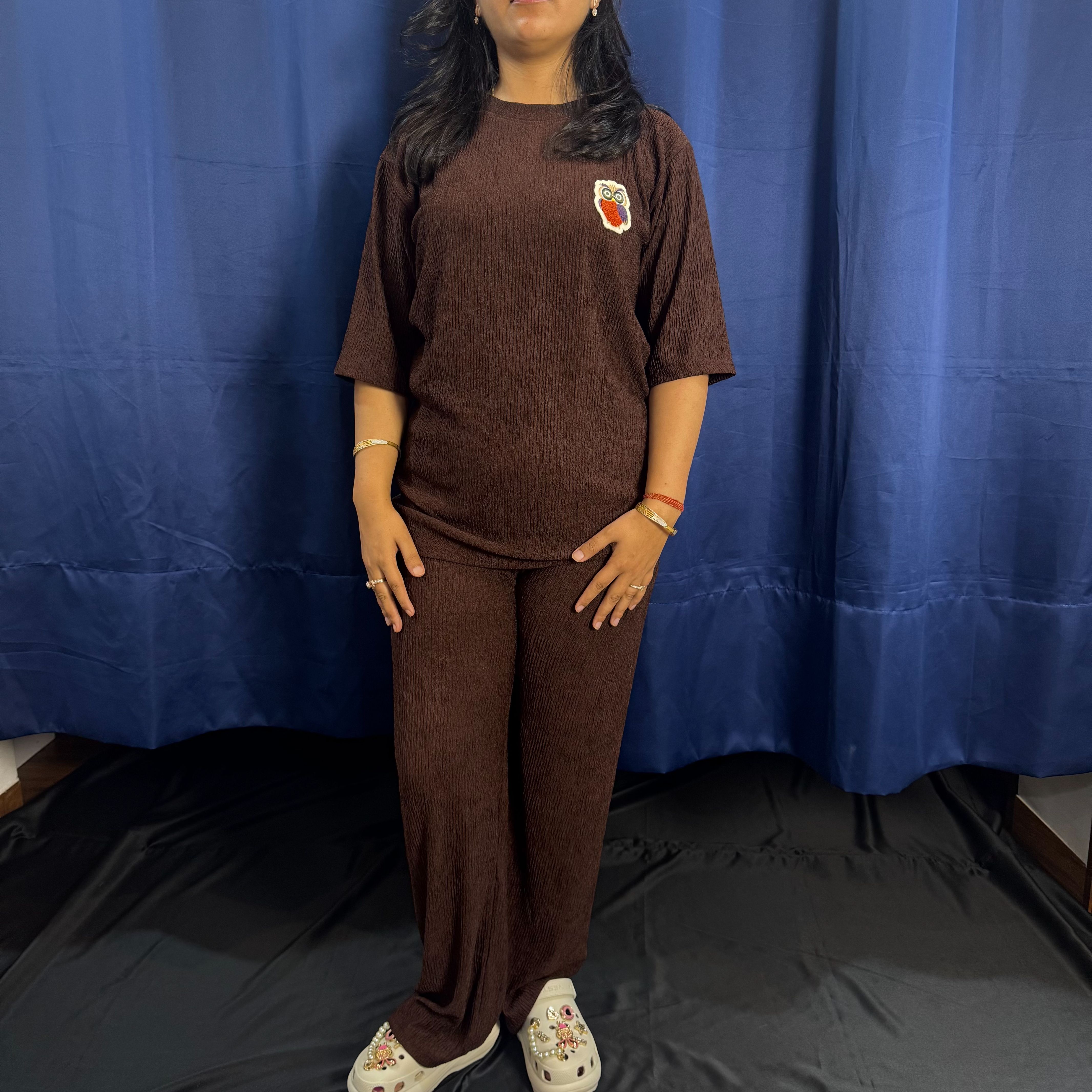 Crinkle Cotton Tshirt with Lower set